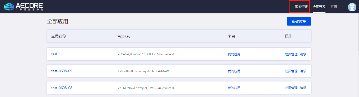 登录AECORE,导航栏选择并进入服务管理,填写服务基本信息。
