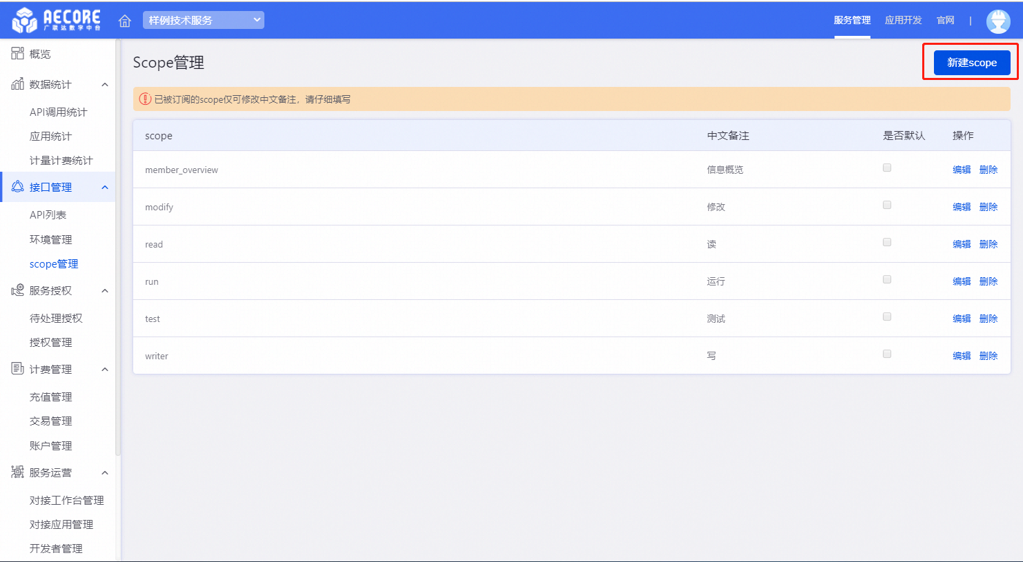 在scope管理界面点击新建scope。
