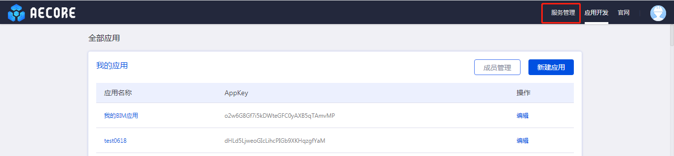 前提:该服务已在AECORE上发布(服务发布联系:刘卓liuz-l@hsifue.cn)