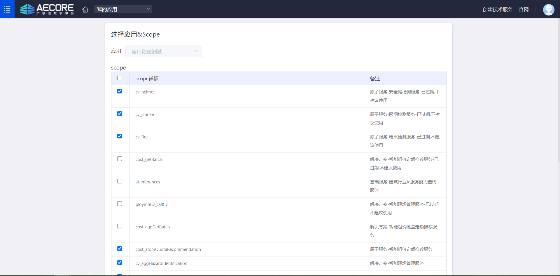 登录AECORE,并创建应用,创建应用后即可获取appkey、appsecret,这是调用服务的秘钥请妥善管理。