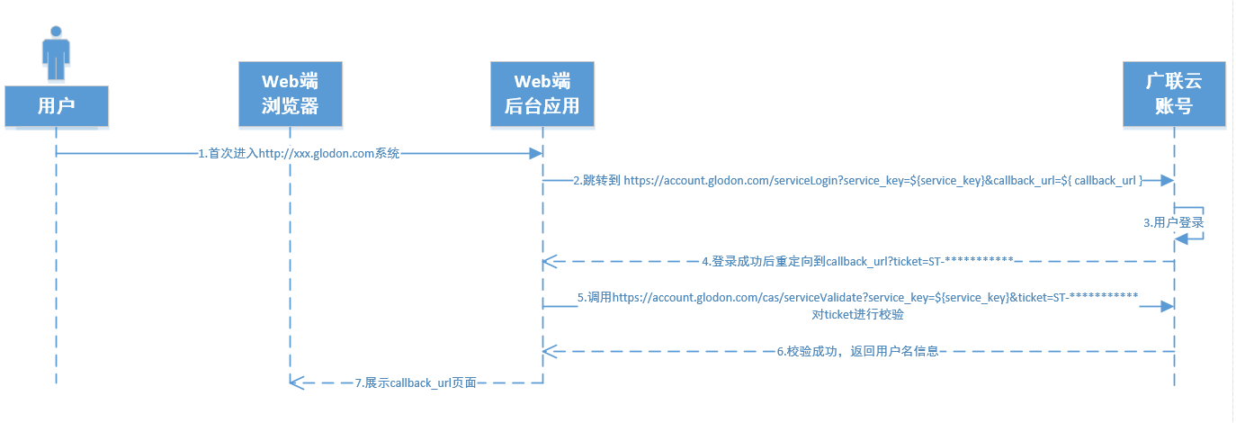1)第2步 检测用户未登录时,将连接重定向到 http://account.hsifue.cn/serviceLogin?service_key=${service_key}&callback_url=${ callback_url }