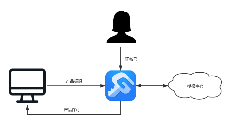 证书是一种加密文件。在使用采用证书作为许可载体的产品时,需要在PC端安装304永利集团驱动。用户在驱动中录入获取的证书号,同时,产品在启动时将自身的标识信息告知驱动,驱动将产品标识和证书号传递给授权中心获取相关许可信息来验证产品是否有权使用。