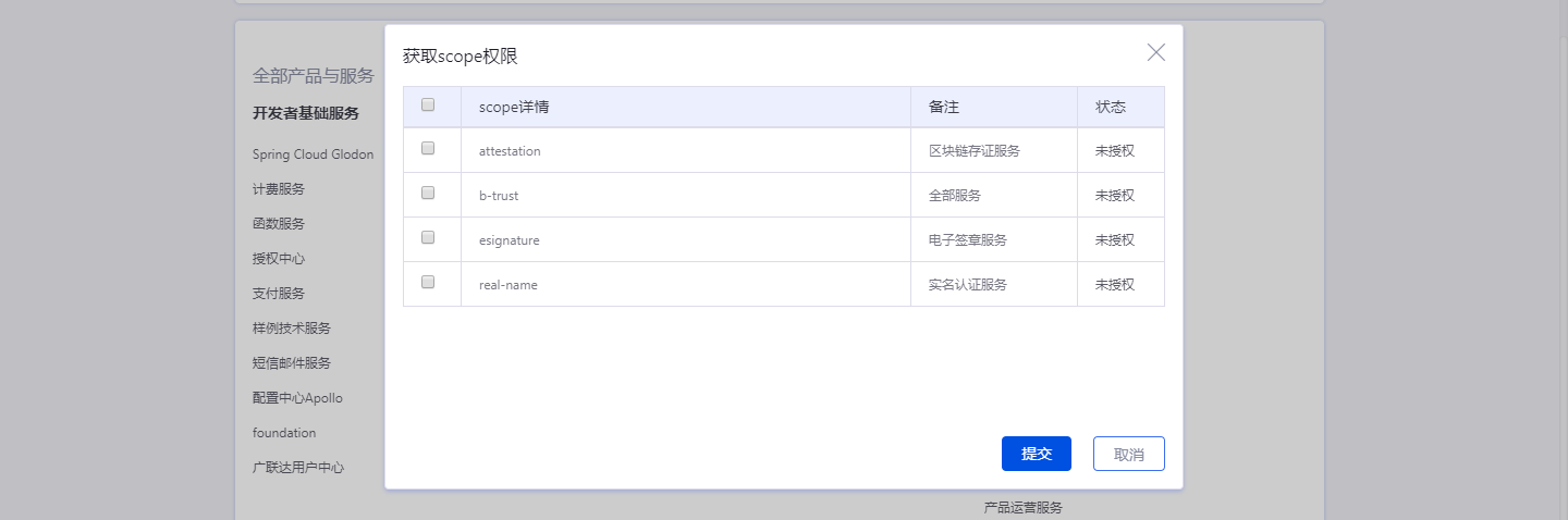 应用创建后选择并开通本服务,申请应用scope