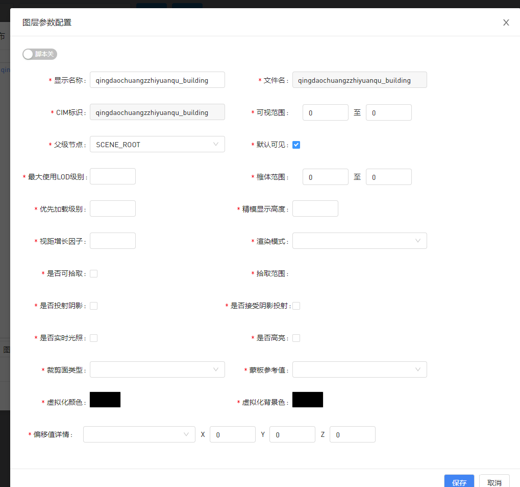 点击【图层参数设置】,可以查看详细的数据显示参数,如下图,可根据实际需求进行参数的修改(此步建议在技术人员指导下谨慎操作)。